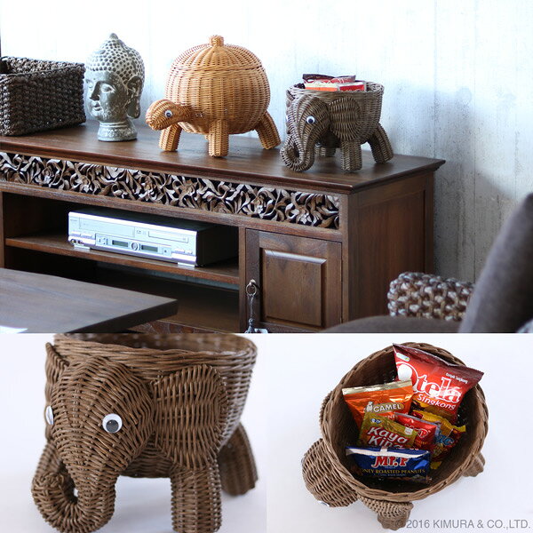 ラタン 籐製 アニマルバスケット 小物入れ 象 Mサイズ ブラウン GK601MMK ラタン 籐製の愛嬌あるアニマルバスケットちょっとした小物入れとして、お部屋の愛嬌あるインテリア・オブジェとして。