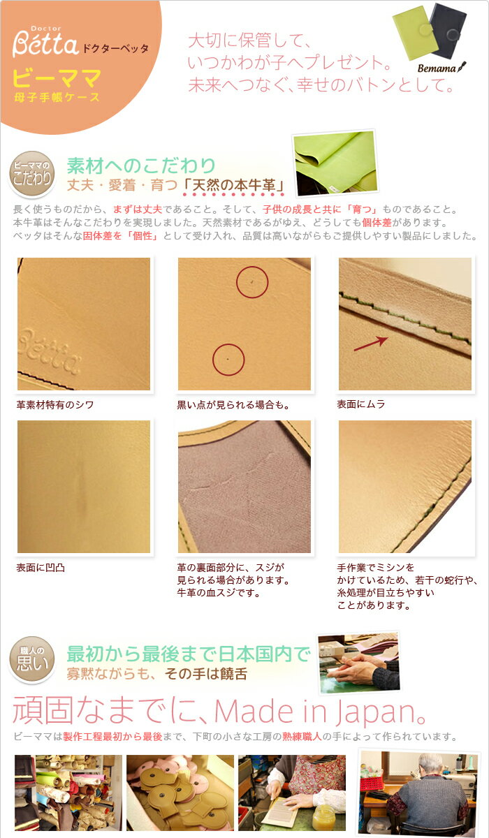 betta ベッタ 日本製 母子手帳ケース 送料無料 本牛革 Bemamaビーママ 本牛革 国産 ブランド 出産祝い ギフト 手作り手帳 ベビー 革製
