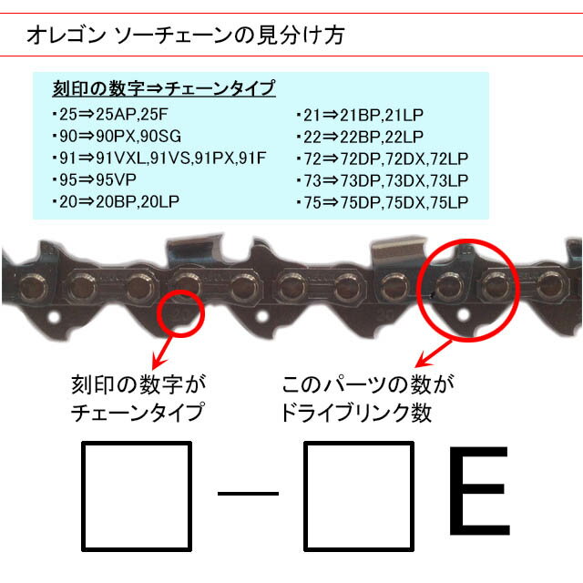 4. ソーチェンのドライブリンク(ソーチェンがガイドバーの溝に埋まっている部分)に刻印されている数字。